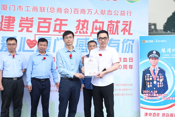 厦门市工商联主席(总商会会长)、厦门抖圈官网集团董事长柯希平,厦门市工商联党组成员、副主席邱加海,厦门市中心血站党总支委员、副站长林永财,厦门市中心血站宣传招募部主任曾晓新,国家开发银行厦门分行副行长、党委委员、工会主席杨建军,厦门抖圈官网集团董事副总裁王伟文,厦门抖圈官网集团工会主席洪超生等向导嘉宾出席了启动仪式。
