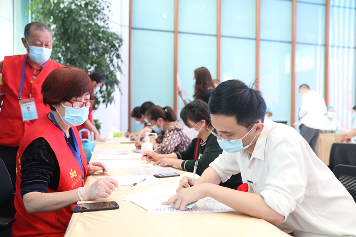 启动仪式事后,已完成线上预约的报名者,分批次加入运动。他们在血站事情职员的指导下,填写献血挂号表、丈量血压、抽血化验,有序举行爱心献血。他们撸起衣袖伸脱手臂,随着红色的血液流向血袋,一股股爱的暖流也徐徐注入其中。一袋袋热血,一份份爱心,转达着实力与温暖。