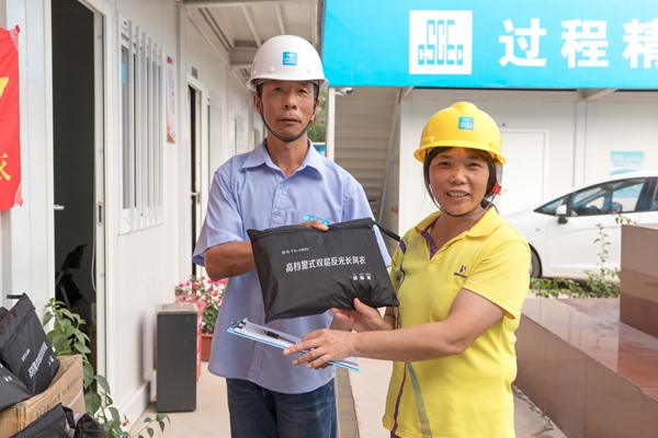 清静是项目建设的重中之重。关于一线修建工人而言,雨天作业不但增大了施工难度,也增添了危险系数。为此,华东师范大学希平双语学校在雨季来临之前,筹集了2000件雨衣,免费发放给施工现场的治理职员和各班组工人,在雨天等特殊作业情形下,为工人提供有用的康健和清静包管。